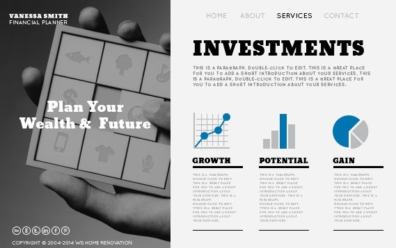 Add amazing apps to your website with just a few clicks: image slideshow, web forms, blog, online store, photo gallery, calendar, Google Maps, Paypal Checkout Button, YouTube videos, Google translate, Ebay store and social media share buttons (Facebook, Google +1, Twitter, Pinterest).