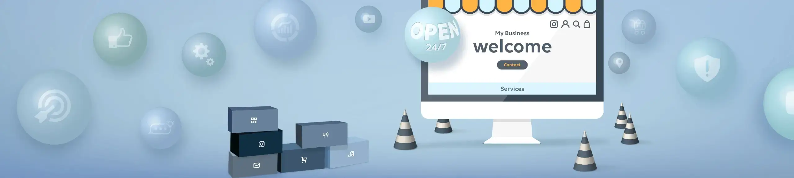 Add and edit buttons, social media widgets, forms for your visitors to fill out, to better engage with your site visitors. For buttons, you can have them link to features such as PDFs of documents or other websites your visitors would find useful. For social widgets, you can use them to link to your presence on different social media platforms. For visitor forms, you can let them help your visitors get in contact with you, sign up for newsletters from your business, and more.